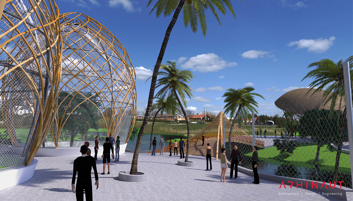 It includes several connected islands surrounded by water. Faunaland is envisioned as a specialized type of zoo containing various exhibits of unique animal species, including terrestrial, aquatic and exotic aviaries.