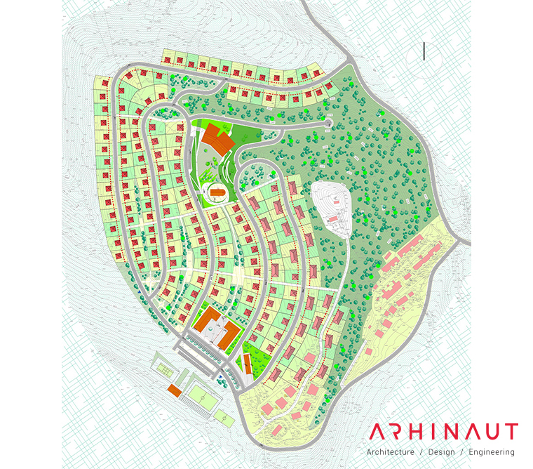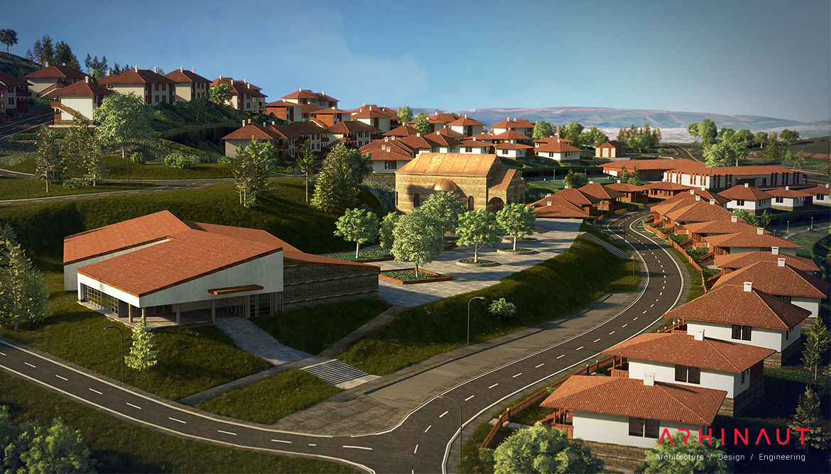 Master plan and concept design including 220 houses and area of 3,500,000m² of the new residential center in the town of Zvečan. The purpose of the project is to provide housing for refugees and returnees to the town of Zvečan. Auxiliary functions include schools, kindergartens, ambulance, community center, etc.
