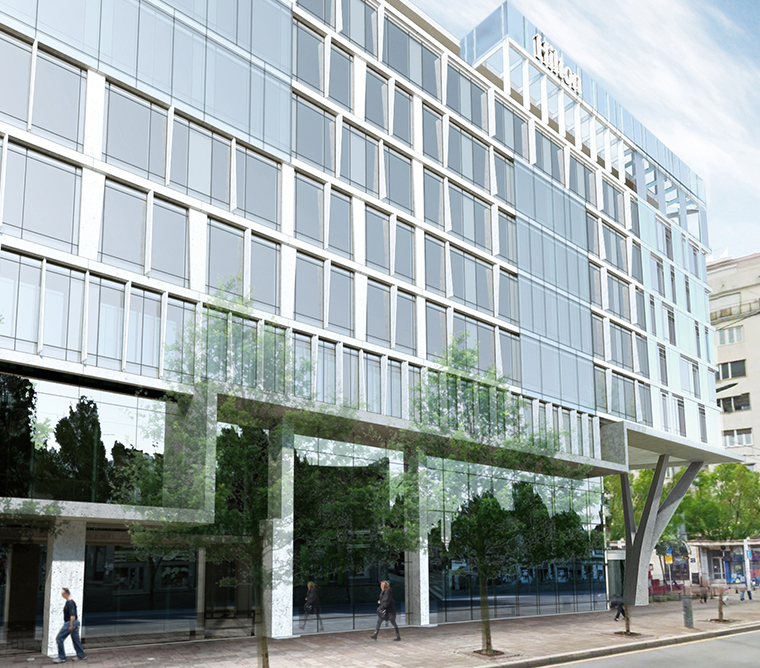 Project was later adapted and re-purpoused. Detailed facade design for the Hilton hotel completed 2017. Total gross area of 40.000 m².