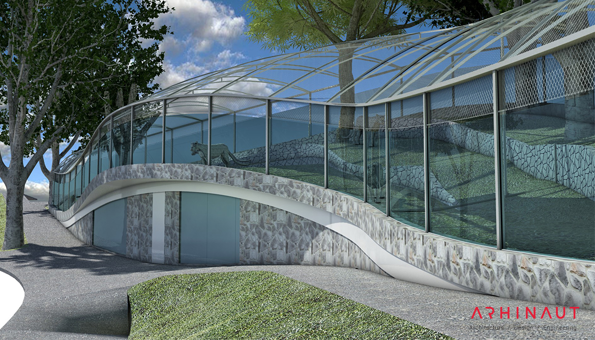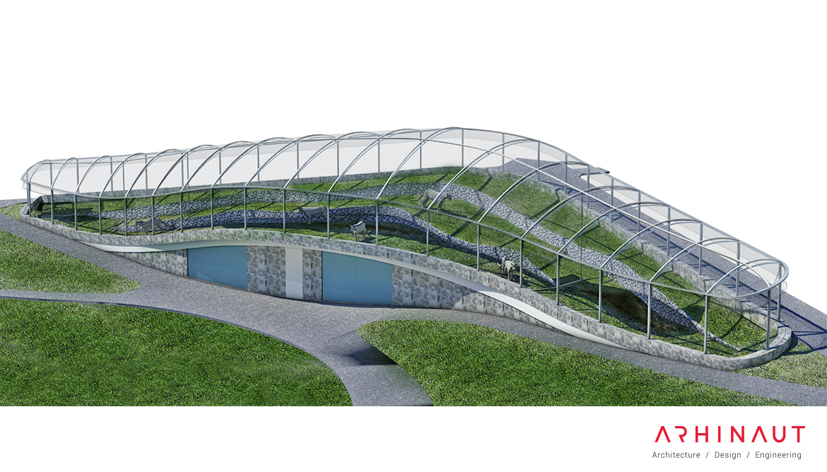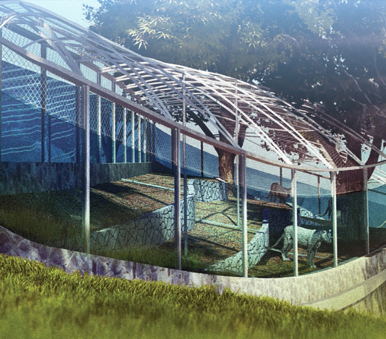 Cages were designed to maximize available outdoor area using the terrain's morphology.
