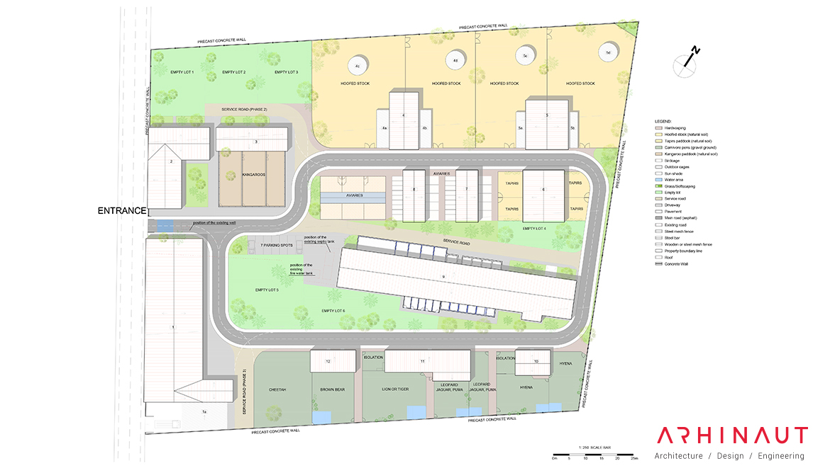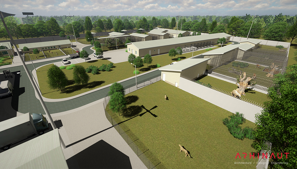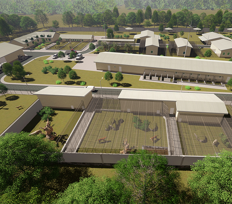 Animal enclosures in Tura covers 17,400m2. It includes over 30 multi-purpose enclosures, 50 multi-purpose cages, administrative building, storage, workshop, water treatment plant and waste management.